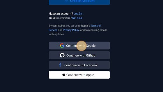 3. Click "Continue with Google" if you have a gmail account. Otherwise, create an account using whatever method you want!