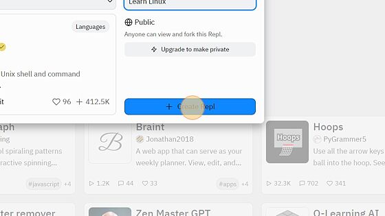 1. インターネットブラウザで、https://replit.com にアクセスします。