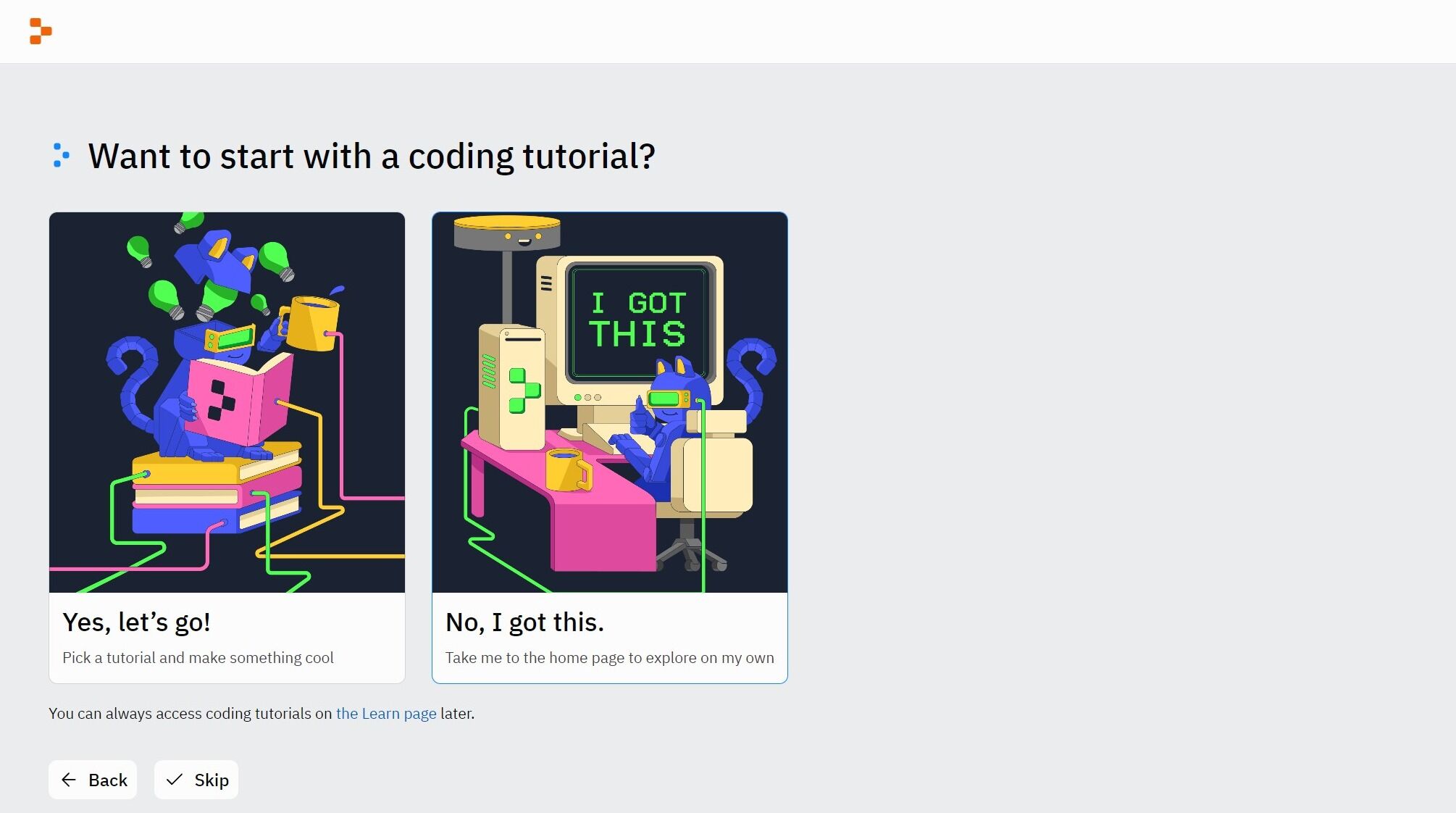 5. Click "No, I got this." We can check out the Learn page later to do some tutorials.