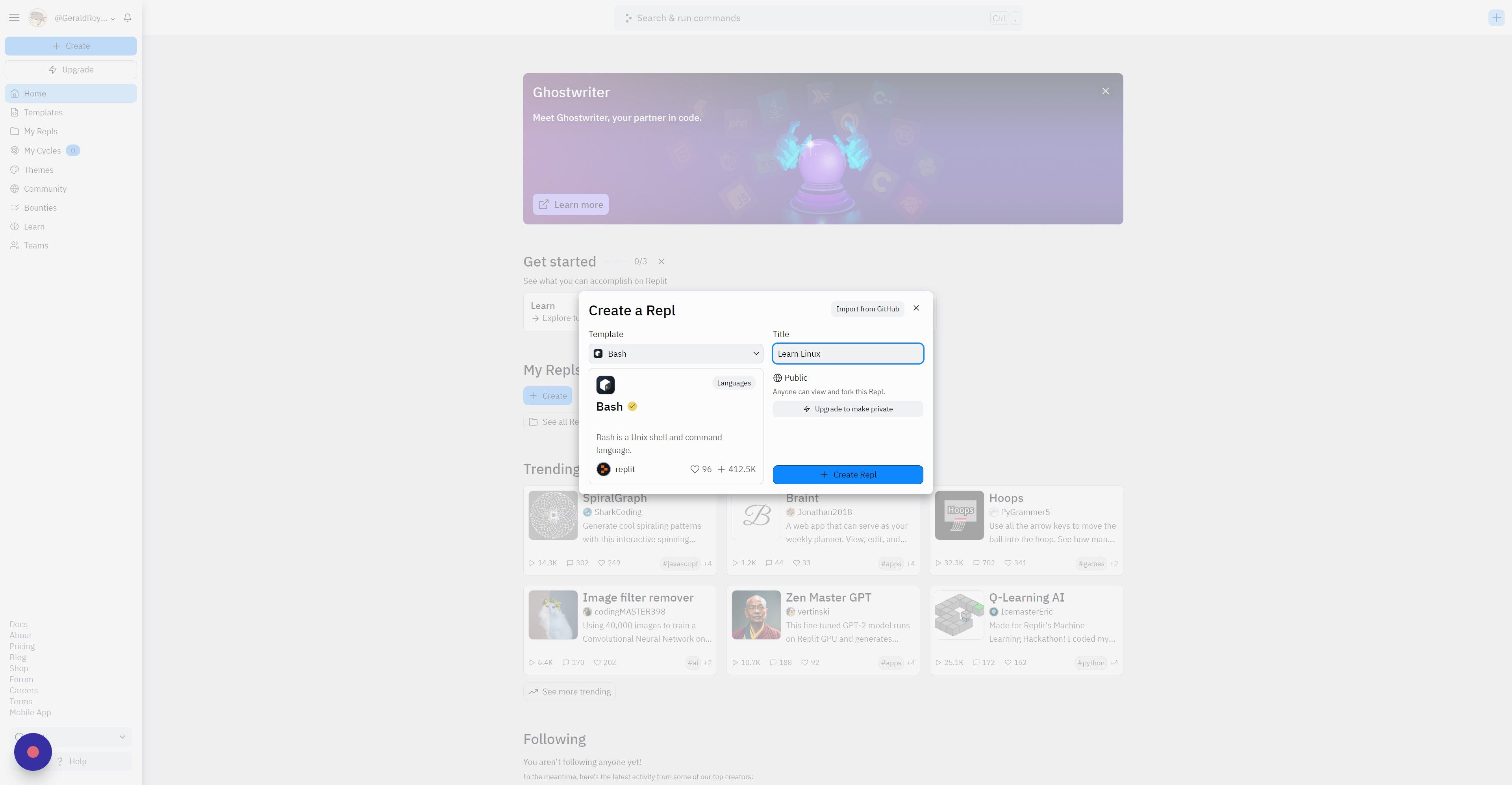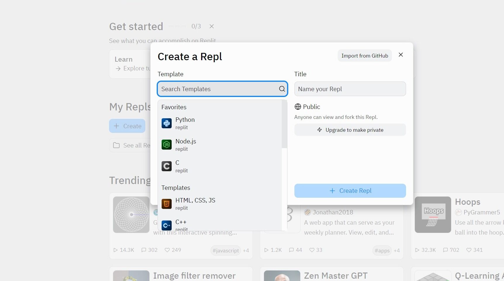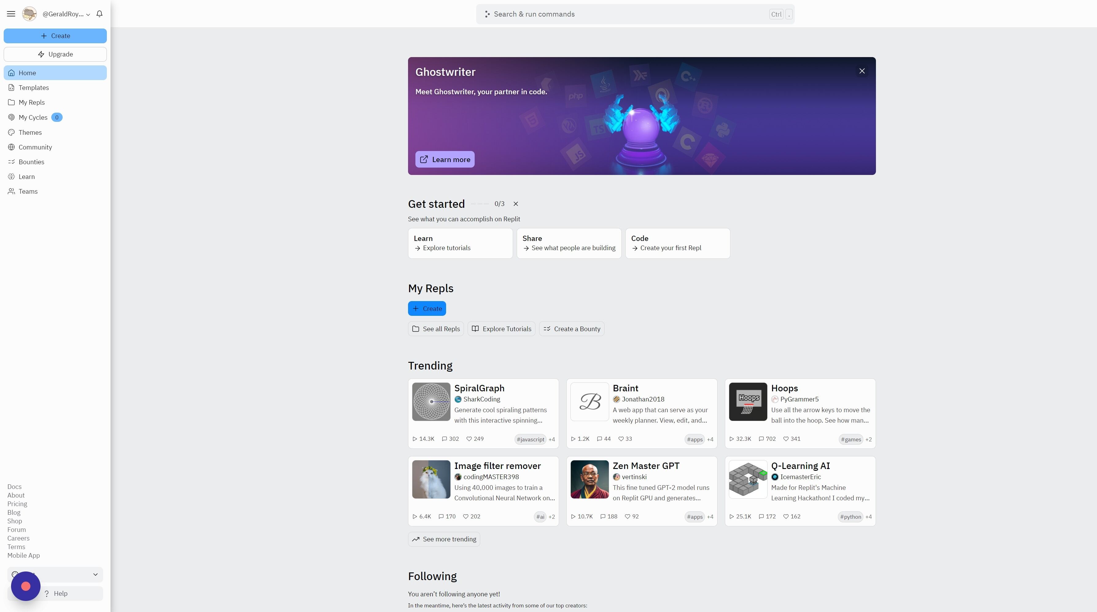 1. インターネットブラウザで、https://replit.com にアクセスします。